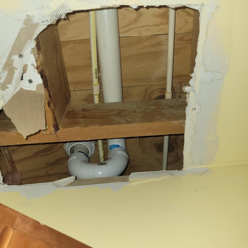 A technician in Bel Air, Maryland completed a 4-foot by 4-foot spot pipe repair to replace damaged blue piping with a pinhole leak. The job included water connection system renovation, leak detection, and system performance and safety testing.
